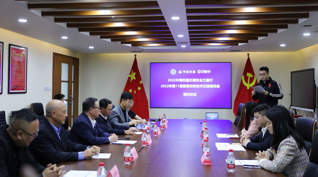 2022年3月9日下午,深圳市宇航光通科技有限公司與深圳市智能交通行業協會、深圳市安防協會在英龍大廈會議室舉辦 “2022交通萬里行”冠名合作、2022年百城會全線加盟的簽約儀式。