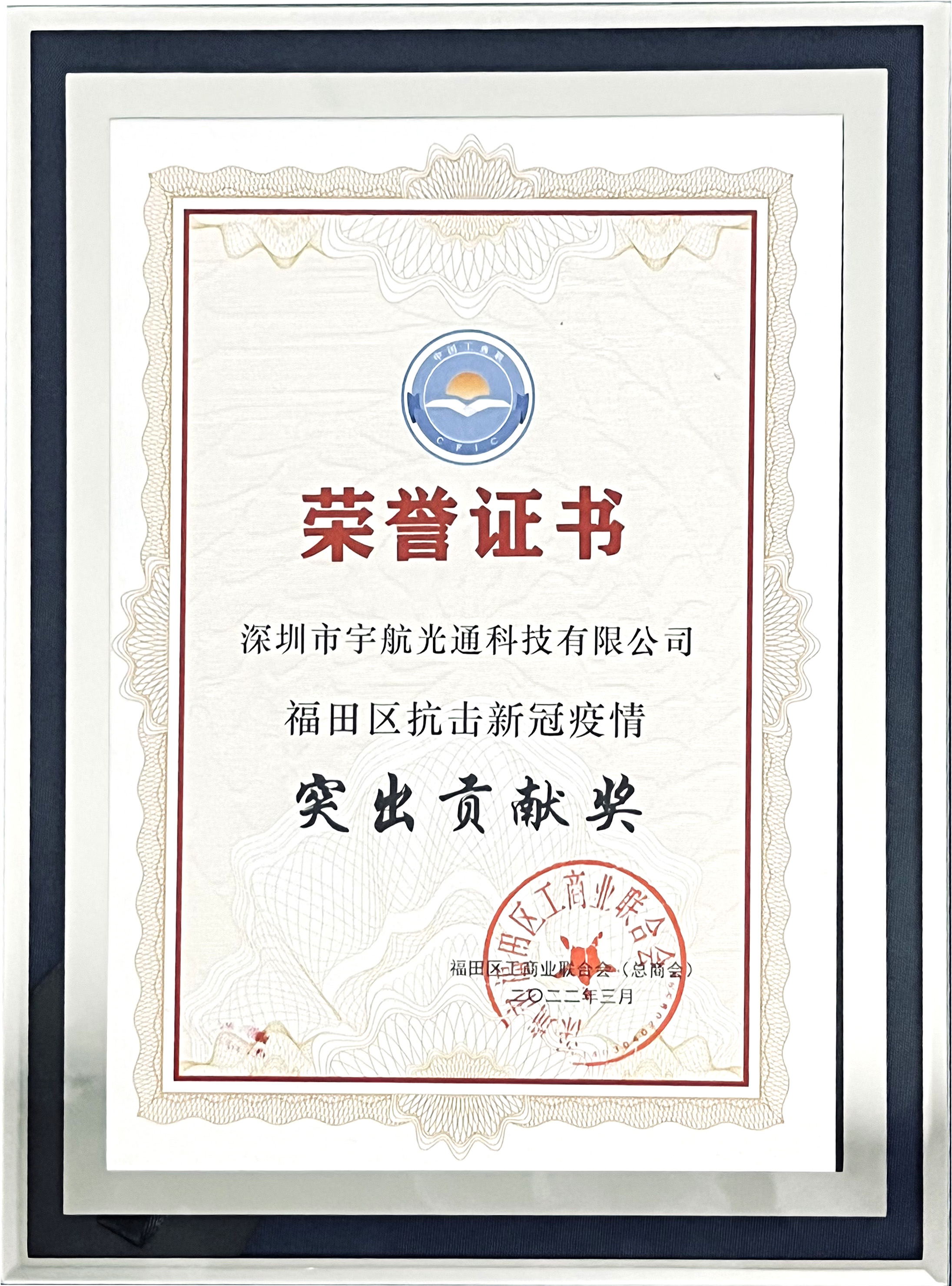 近期,宇航收到由深圳市福田區頒發的榮譽證書和感謝信: