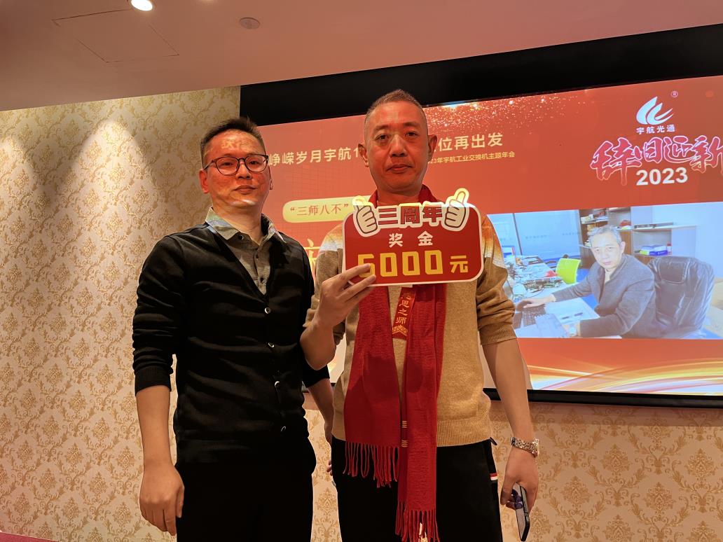陳偉恒—入職宇航五周年獎,獎勵現金一萬元。每天穿梭在車間的每個崗位,揮灑汗水、容光煥發,宇航能夠做到高效、并保質保量的出貨,離不開他的辛勤付出。