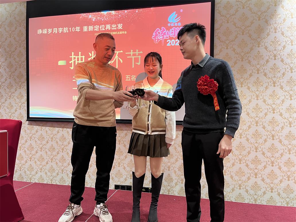 俗話說的好,沒有抽獎的年會不完整,宇航向來比較直接,準備了大量現金,就等幸運者搬回家~大家用掌聲和吶喊聲一起迎來了全場最讓人興奮、期待的抽獎環節,抽獎過程扣人心弦,緊張激動,主持人宣讀中獎者的時候,現場氣氛更是達到了前所未有的高漲,每個人都希望自己可以中獎抱回家,大家也在一片尖叫聲中揭曉了大獎歸屬~