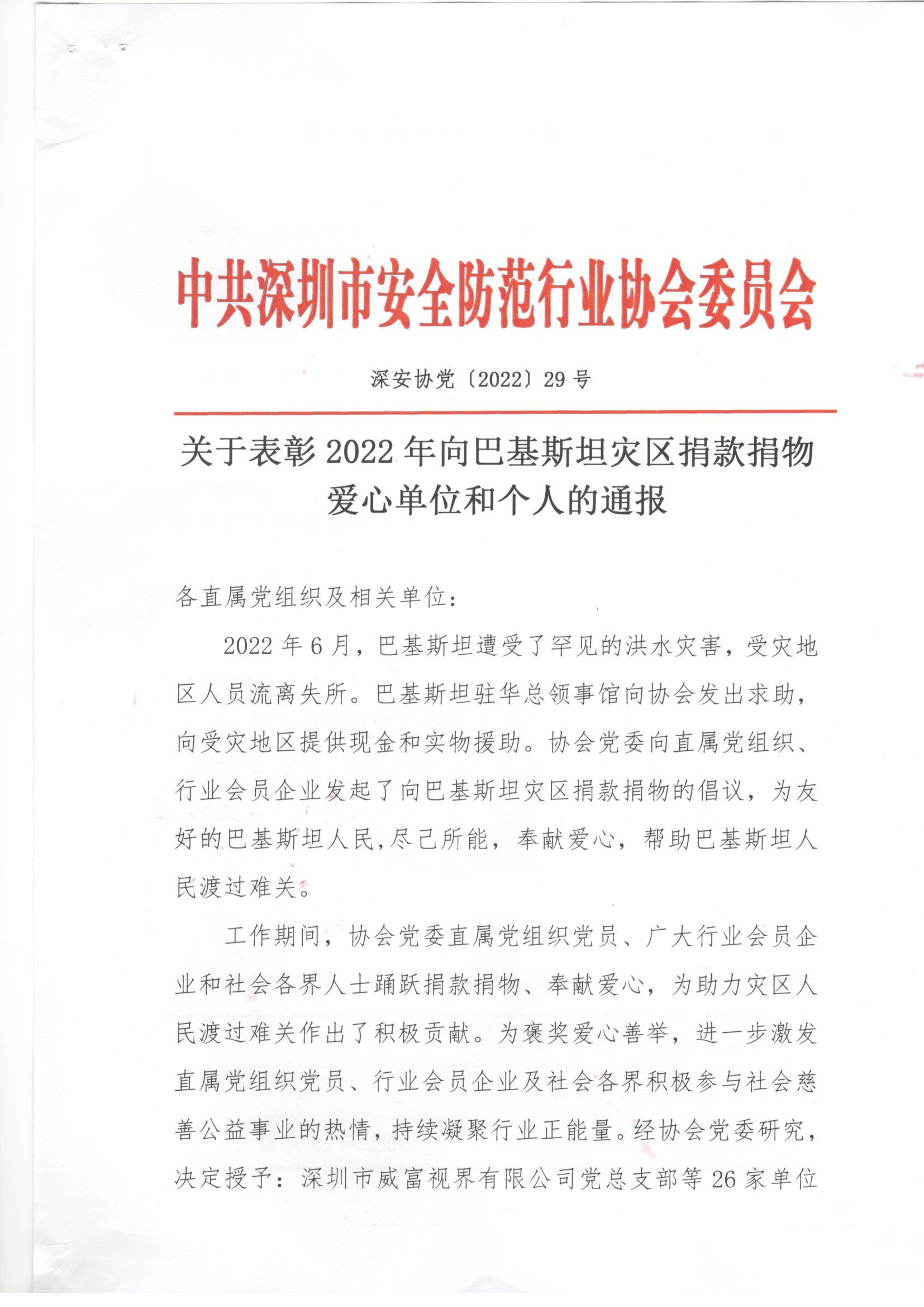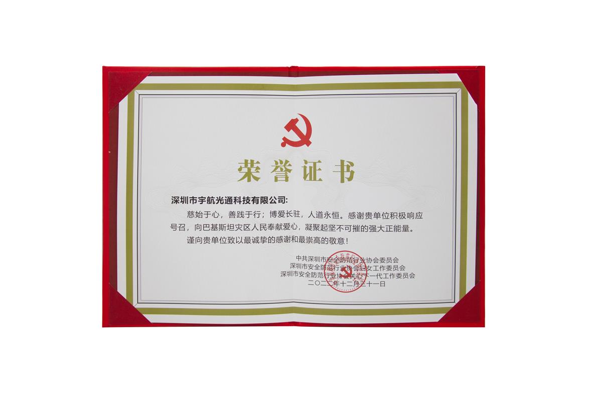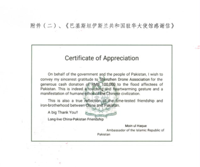 深圳市宇航光通科技有限公司:慈始于心,善踐于行;博愛長駐,人道永恒。感謝貴單位積極響應號召,向巴基斯坦災區人民奉獻愛心,凝聚起堅不可摧的強大正能量。謹向貴單位致以最誠摯的感謝和最崇高的敬意!