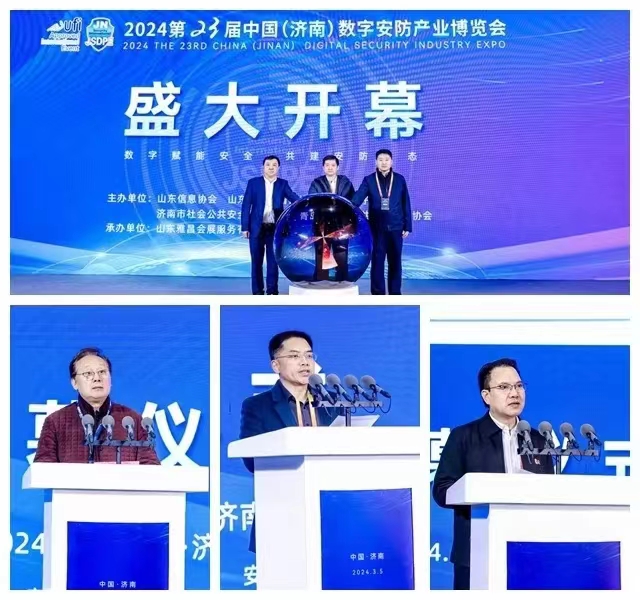 中國安全防范產品行業協會秘書長王楠,公安部七局原二級巡視員、中國安防協會安檢防爆專委會副主任陸劍君,北京市公安局原副局長、北京安全防范行業協會黨支部書記單志剛,深安協副會長、深交協副會長、智慧路口專委會主任、宇航工業交換機劉偉成,濟南市公安局相關部門以及中國安防協會和北京、天津、浙江、福建、安徽、湖北、新疆、陜西、深圳、南昌、武漢、蘇州、成都、徐州、青島、臨沂等全國近20家地方安防協會、行業協會60余位領導,安防企業代表、安防專業院校、參展商、專業觀眾400余人參加了開幕式。開幕式由濟南安防協會黨支部書記兼秘書長楊中海主持。