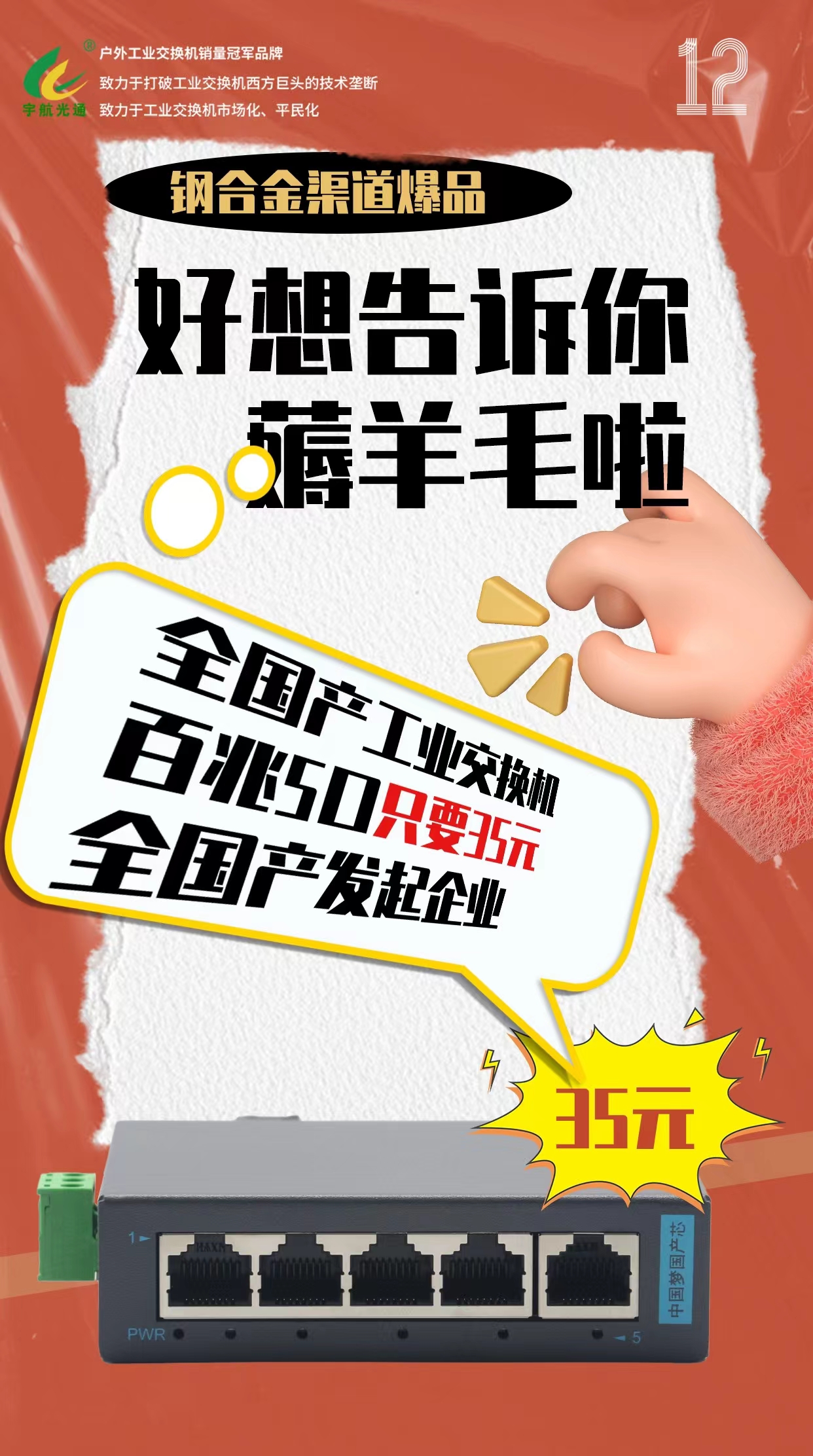 值得一提的是,宇航工業交換機在本次大會上重點展示了最新推出的鋼合金渠道爆品系列產品。這一系列產品是宇航在深入研究市場需求和競爭態勢的基礎上,應市場要求推出的全國產鋼合金系列產品。該系列產品不僅繼承了宇航工業交換機一貫的高品質、高可靠性特點,還在價格上更具競爭力,為市場端和客戶提供了更多元化的選擇。
