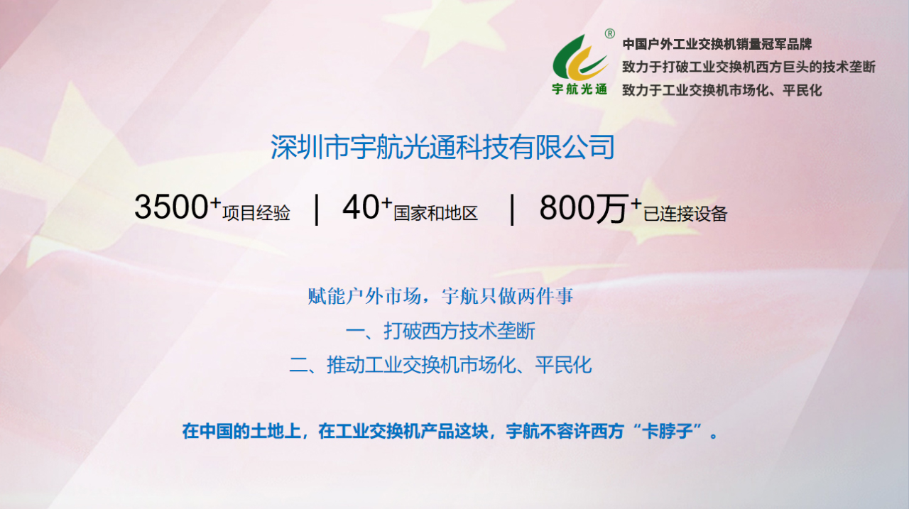 宇航,是一家聚焦工業交換機產品的源頭廠商,宇航工業交換機將繼續秉承“至誠至正”的企業文化,不斷加大研發投入,提升產品性能與服務質量,為客戶提供更加優質、高效的工業通信及工業物聯網產品解決方案。宇航堅信,只有行業的整體發展,才能為企業帶來更多的機遇與挑戰,也才能為客戶提供更加全面、專業的服務。
