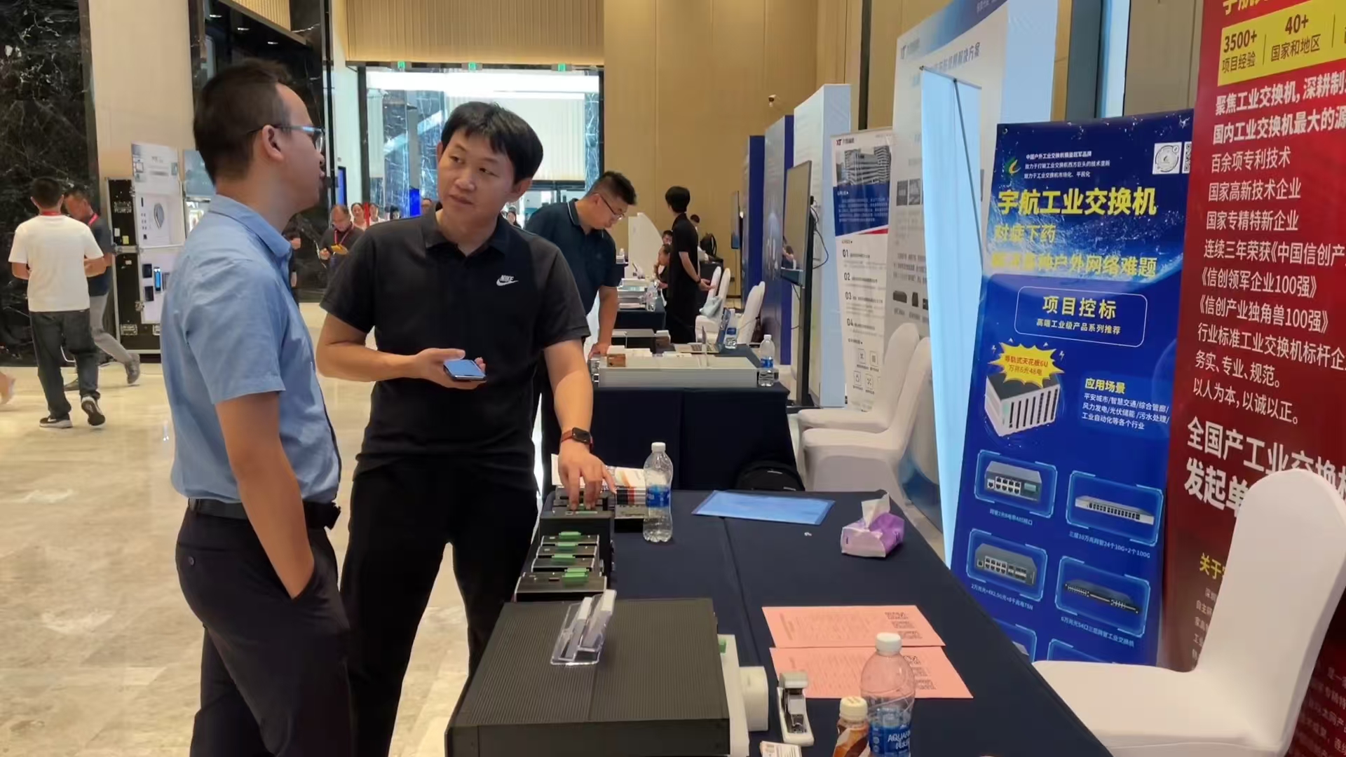 在展臺(tái)上,宇航工業(yè)交換機(jī)代表們?cè)敿?xì)介紹了每款產(chǎn)品的技術(shù)亮點(diǎn)和實(shí)際應(yīng)用效果,大家圍繞著展示臺(tái)展開了熱烈的討論,爭(zhēng)相了解新產(chǎn)品如何能夠提高他們現(xiàn)有系統(tǒng)的效率和可靠性,很多合作伙伴在輕松的氛圍中進(jìn)行深入的對(duì)話,大家互相交換名片、討論合作機(jī)會(huì),并表達(dá)了對(duì)宇航工業(yè)交換機(jī)產(chǎn)品的濃厚興趣,同時(shí)也對(duì)宇航新產(chǎn)品和新解決方案寄予了厚望,期待能夠在未來的項(xiàng)目中發(fā)揮重要作用。