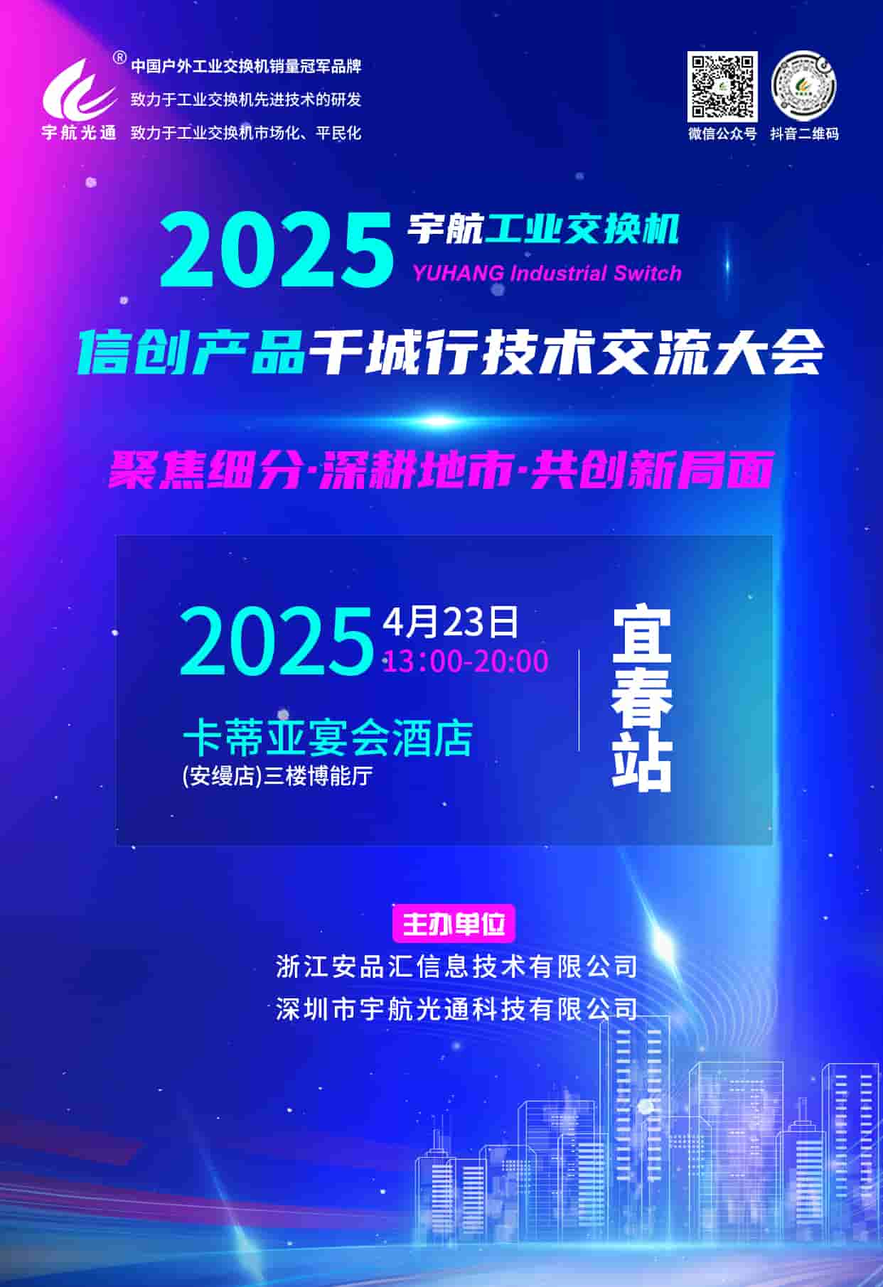 2025年4月15日至4月18日,宇航工業(yè)交換機(jī)作為中國(guó)戶(hù)外工業(yè)交換機(jī)銷(xiāo)量冠軍品牌,成功舉辦了2025信創(chuàng)產(chǎn)品千城行技術(shù)交流大會(huì)杭州站、南通站及贛州站活動(dòng)。三地會(huì)議匯聚行業(yè)精英,深入探討信創(chuàng)產(chǎn)業(yè)發(fā)展與工業(yè)互聯(lián)新趨勢(shì),展示了宇航在國(guó)產(chǎn)化替代領(lǐng)域的創(chuàng)新成果與技術(shù)優(yōu)勢(shì)。與會(huì)嘉賓普遍反饋收獲頗豐,此次交流盛會(huì)不僅促進(jìn)了區(qū)域產(chǎn)業(yè)協(xié)同,更為宇航品牌的全國(guó)化布局注入新動(dòng)力,彰顯了民族品牌的創(chuàng)新活力與使命擔(dān)當(dāng)。