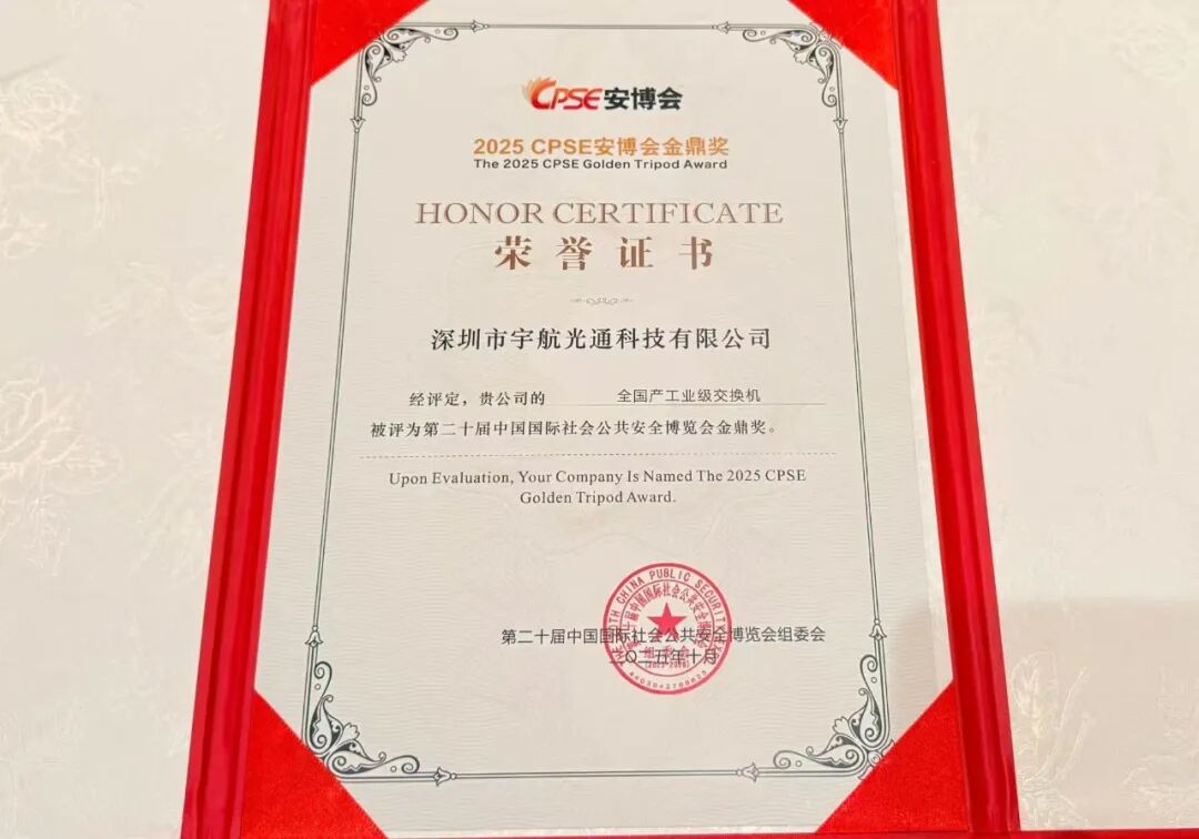 在第二十屆中國國際社會公共安全博覽會(CPSE安博會)暨第三屆世界數字城市大會上,宇航工業交換機憑借強勁的創新實力與穩固的品牌影響力,從眾多參選企業中脫穎而出,一舉斬獲“CPSE安博會金鼎獎”與“世界數字城市大會十大品牌”兩項行業大獎!
