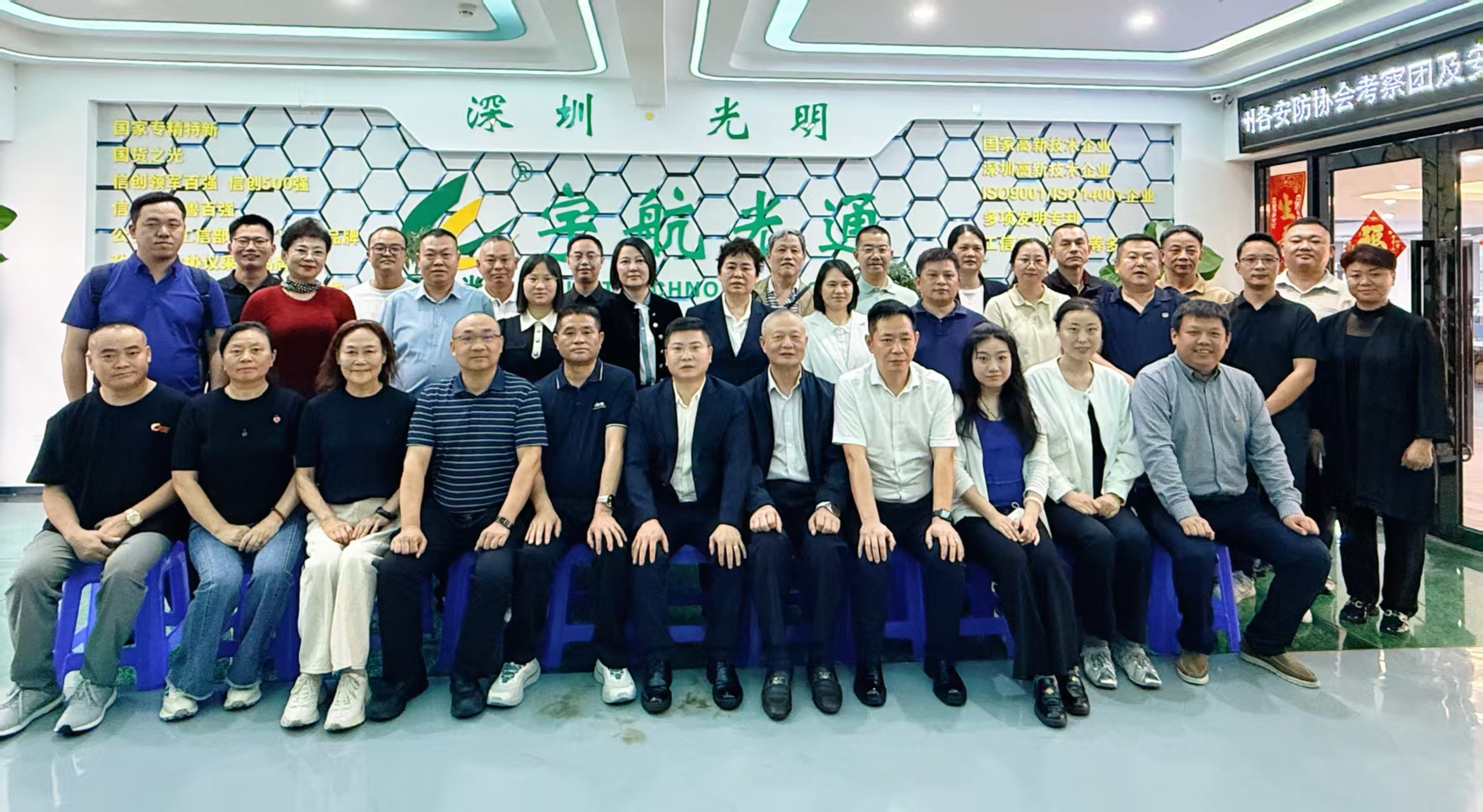 展會期間,宇航不僅前端業務忙碌,后方接待亦有序展開。10月29日下午,宇航迎來了一批重要的行業伙伴—福建、貴州、湖北、山東、成都、杭州各安防協會考察團及安防品牌日組委會領導蒞臨宇航參觀指導!一行四十余人,宇航工業交換機劉總全程接待,并就公司在工業交換機領域的發展現狀與未來規劃作了系統介紹。雙方在座談中圍繞國產化技術路徑、區域協同與行業融合等議題進行了深入探討,共同期待未來在推動工業網絡自主可控進程中攜手合作、實現共贏。