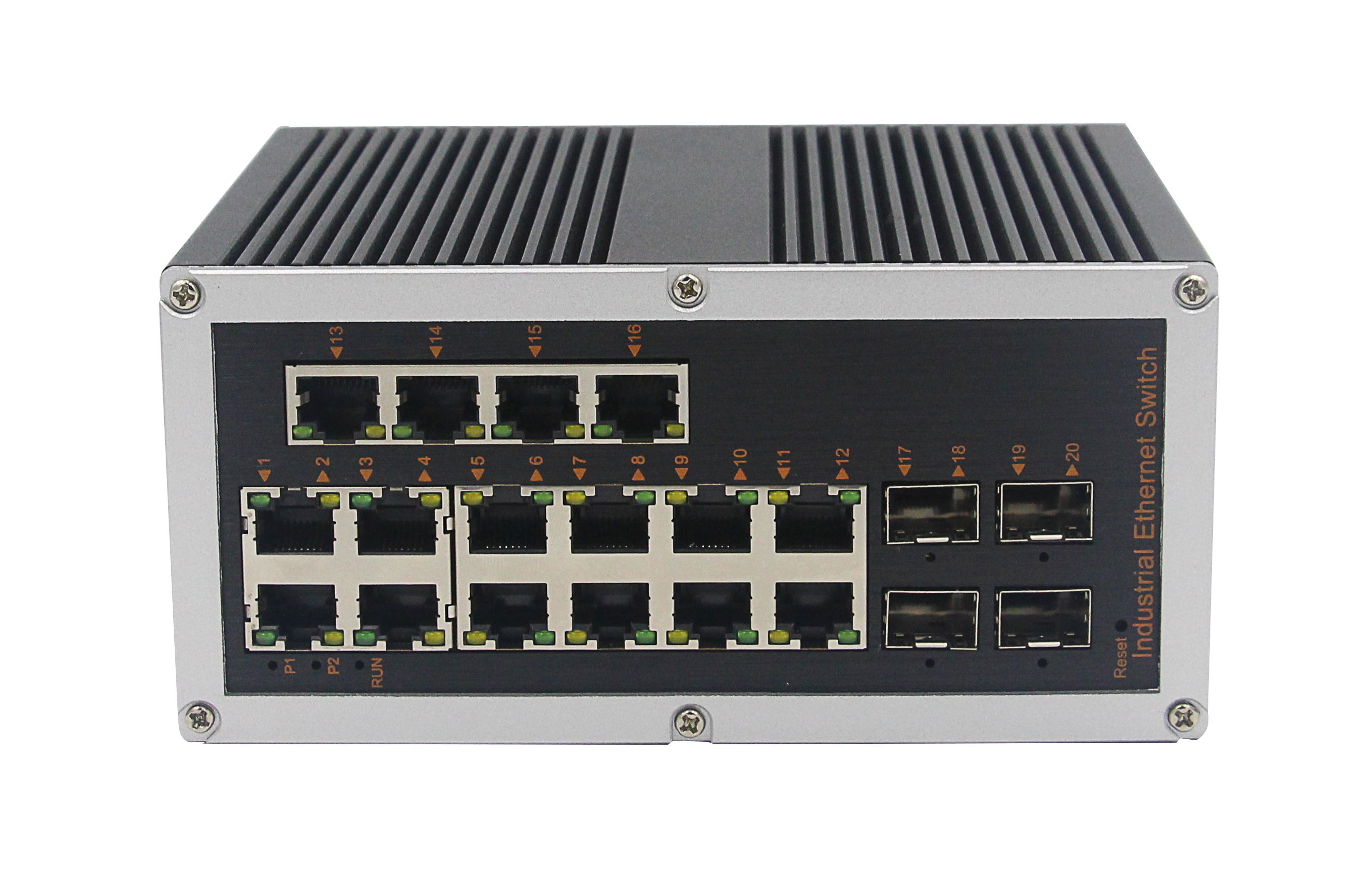 型號YH600-416BGS-SFP網管型千兆4光16電工業以太網交換機,產品符合FCC、CE、ROHS標準。支持4個千兆光口和16個千兆電口,支持一路console口;支持工業現場所需的以太網二層協議,保證通信網絡的穩定性;該系列交換機采用低功耗、無風扇設計,確保無噪聲干擾,同時支持-40~85℃工作溫度和良好的EMC電磁兼容性能,保證在惡劣的工業環境中保持穩定的工作,為工廠自動化,智能交通,視頻監控等工業應用領域組建快速穩定的網絡終端接入網絡提供安全可靠的解決方案。護等級的外殼及 LED 指示燈,使之成為一個即插即用的工業級設備,為用戶的以太網設備聯網提供可靠、便捷的解決方案。