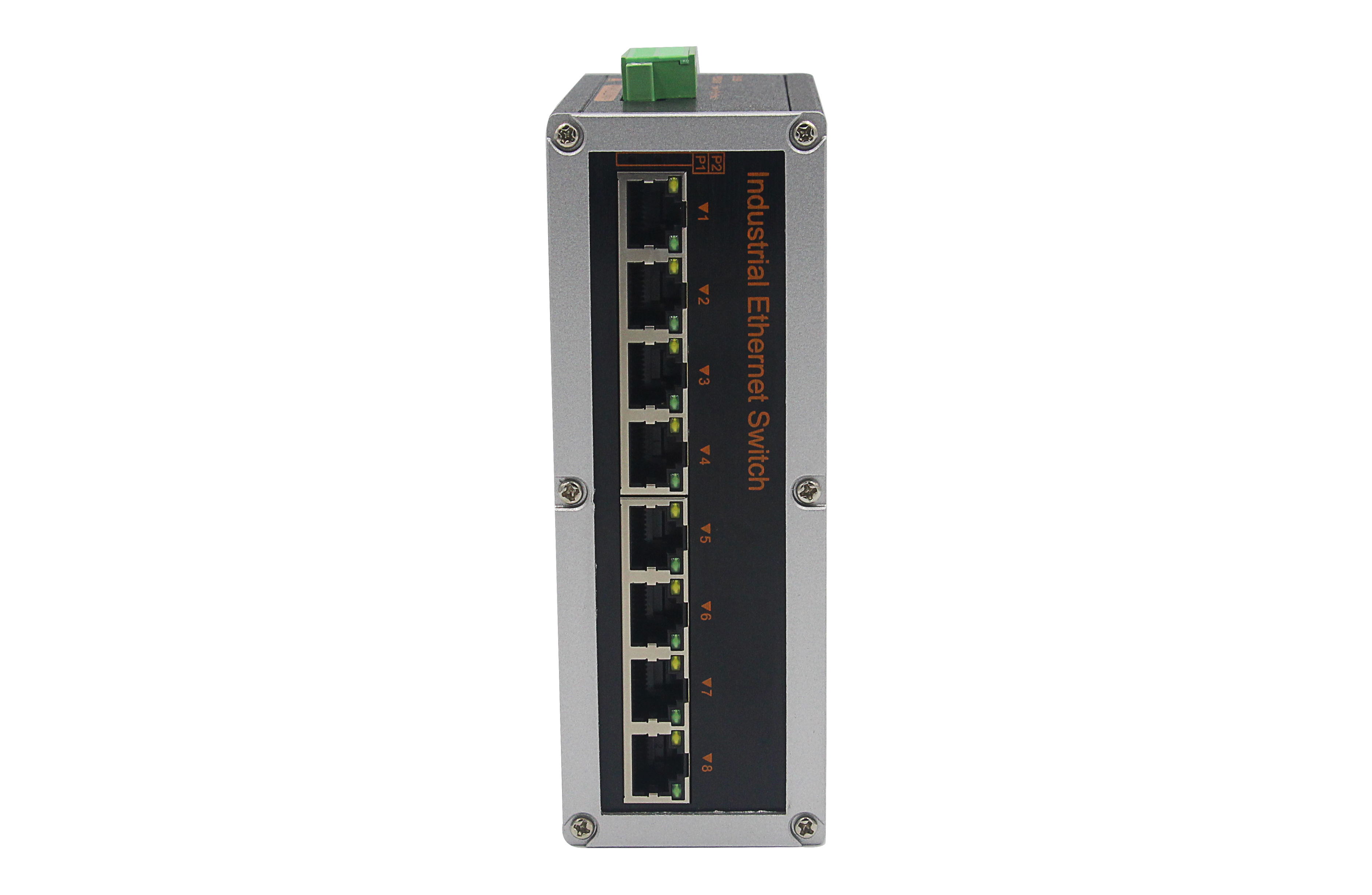 百兆8電工業級以太網交換機產品符合 FCC、CE、ROHS 標準。此系列交換機具有 -40℃~ 85℃的工作溫度, 具有超強的堅固度能適應各種嚴苛環境,也可以非常方便的安置在空間緊湊的控制箱中。導軌式的安裝特性、寬溫操作及擁有 IP40 防護等級的外殼及 LED 指示燈,使之成為一個即插即用的工業級設備,為用戶的以太網設備聯網提供可靠、便捷的解決方案。