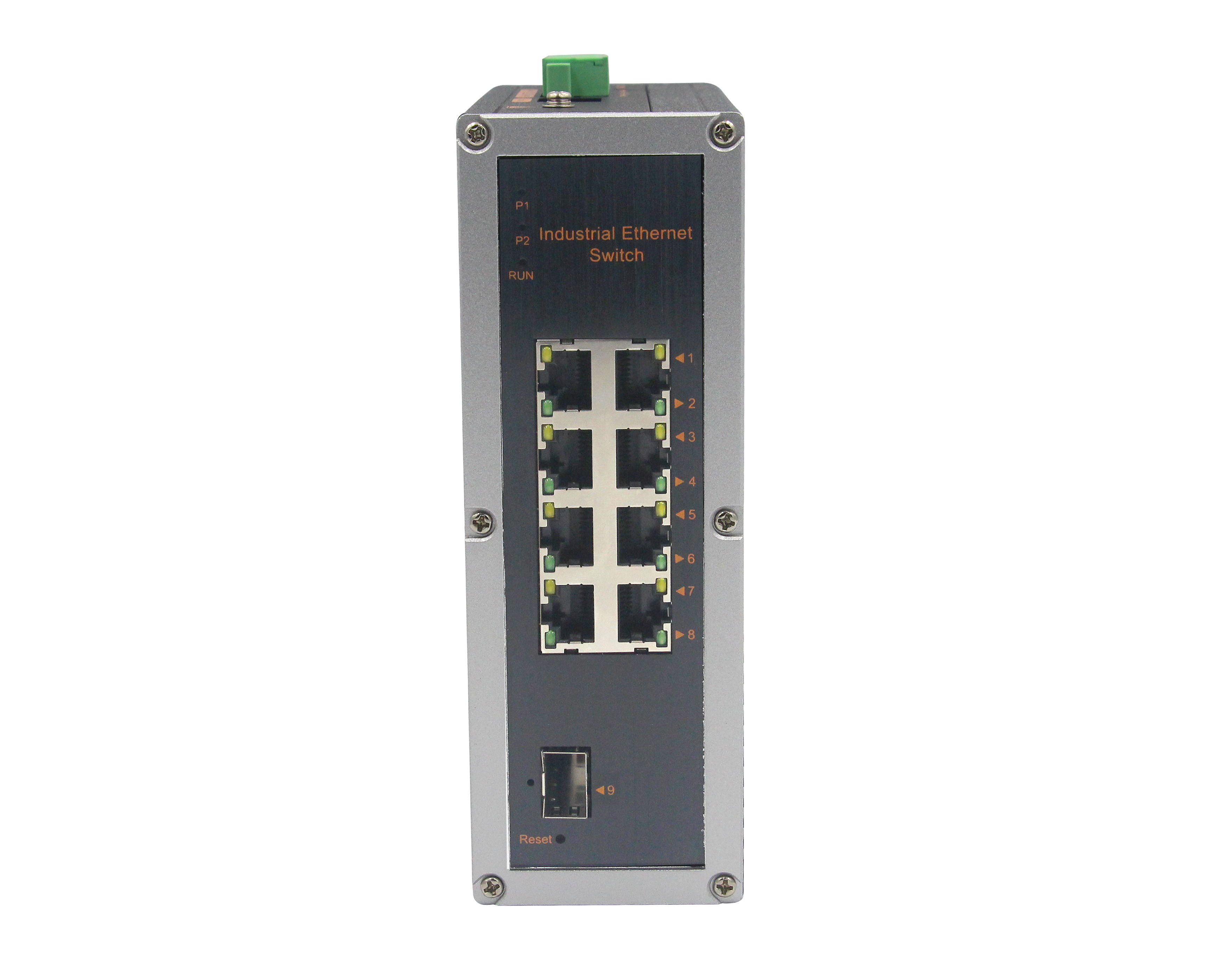 百兆1光8電工業級以太網交換機產品符合 FCC、CE、ROHS 標準。此系列交換機具有 -40℃~ 85℃的工作溫度, 具有超強的堅固度能適應各種嚴苛環境,也可以非常方便的安置在空間緊湊的控制箱中。導軌式的安裝特性、寬溫操作及擁有 IP40 防護等級的外殼及 LED 指示燈,使之成為一個即插即用的工業級設備,為用戶的以太網設備聯網提供可靠、便捷的解決方案。