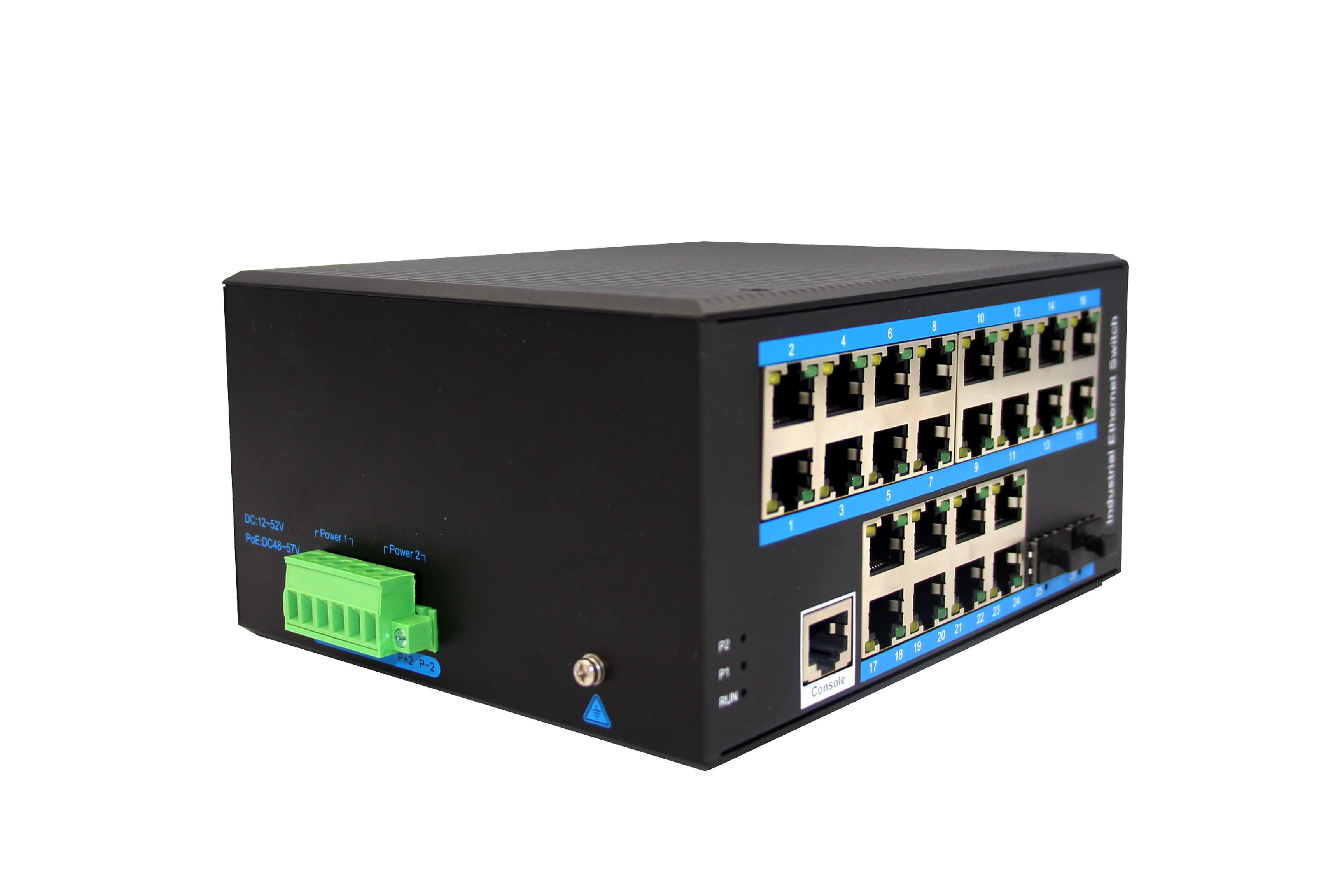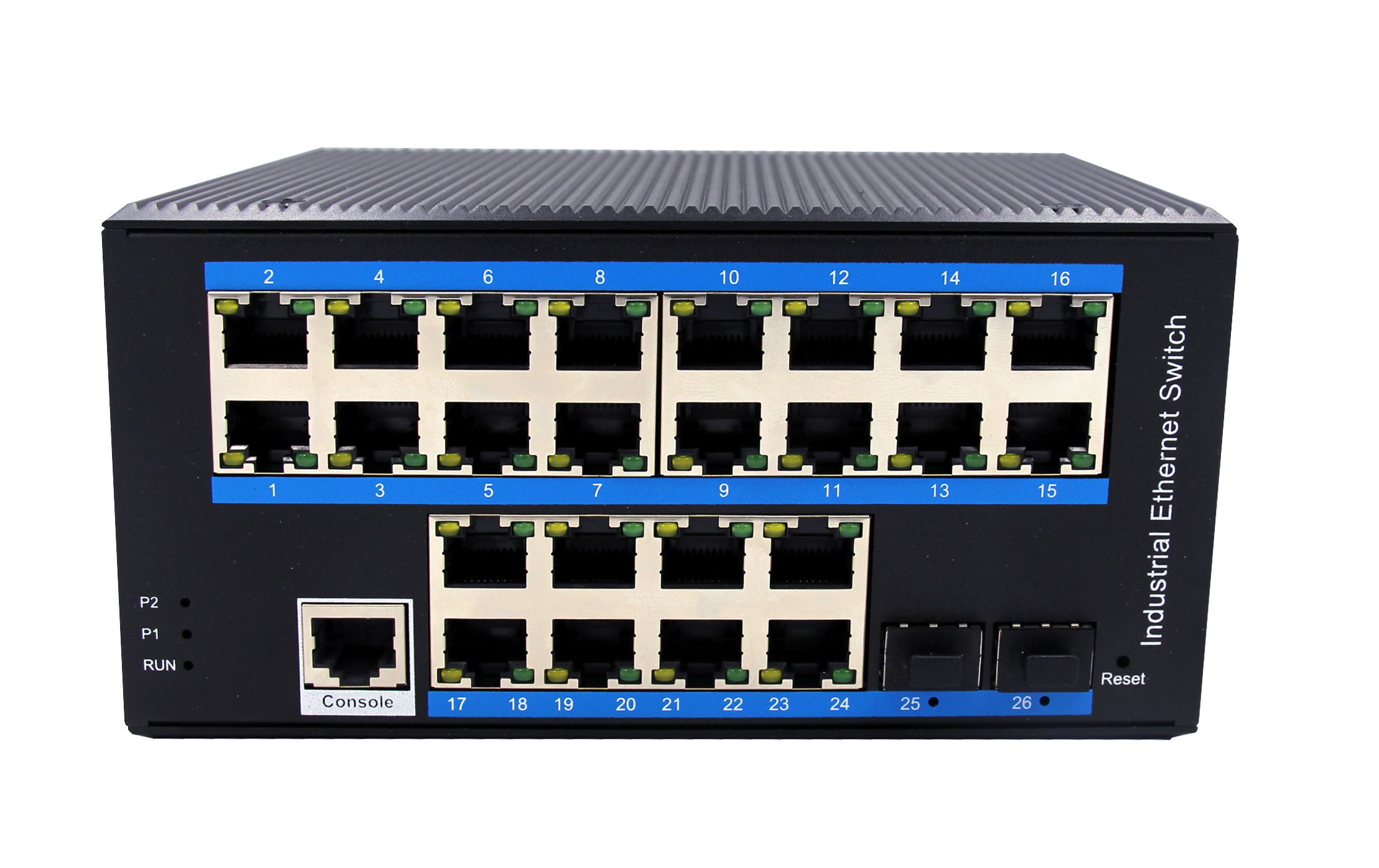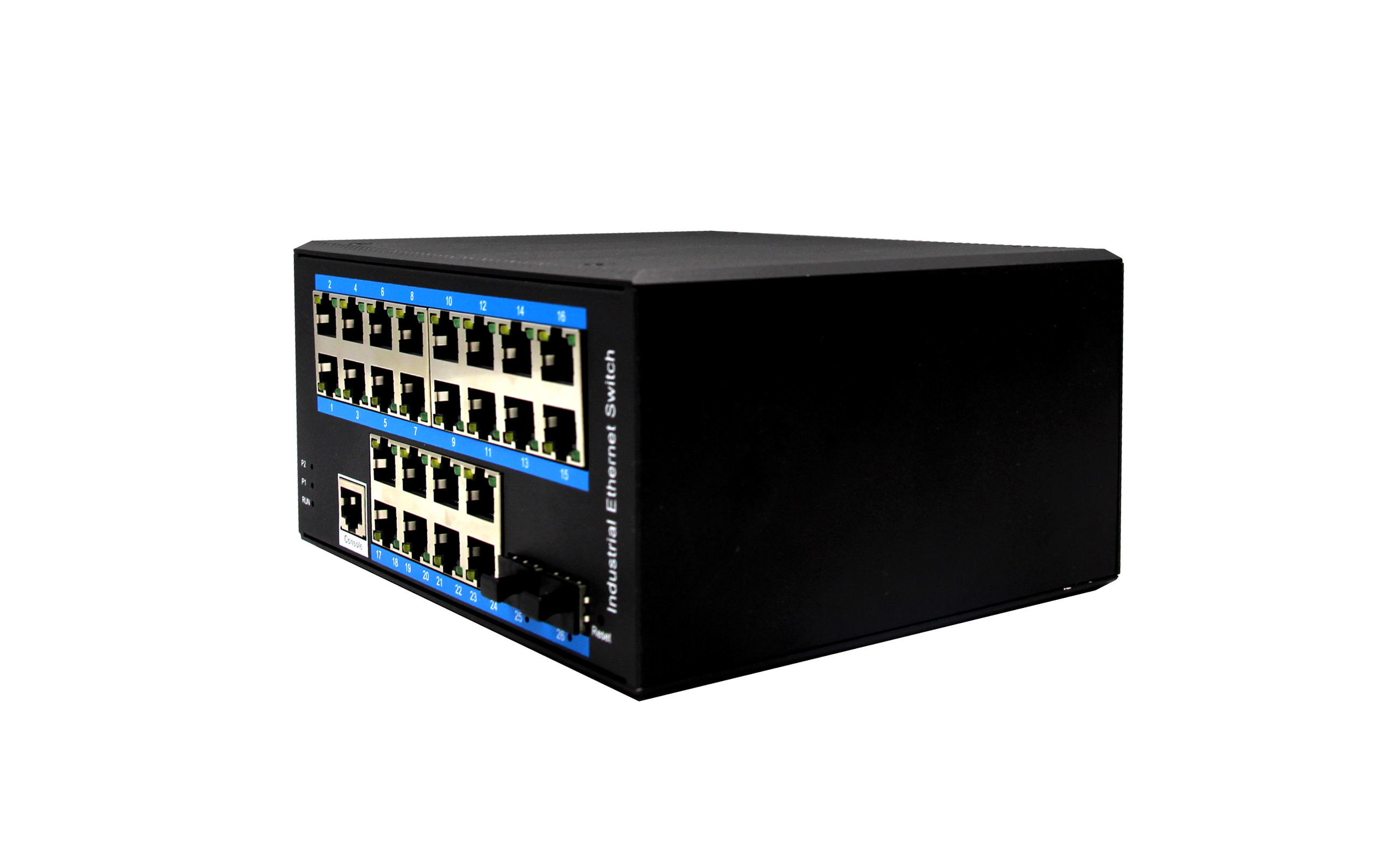 YH600-224GS-M-SFP是網管型工業以太網交換機,產品符合FCC、CE、RoHS標準。支持2個千兆光口和24個千兆電口;支持工業現場所需的以太網二層協議,保證通信網絡的穩定性;該系列交換機采用低功耗、無風扇設計,確保無噪聲干擾,同時支持-40~85℃工作溫度和良好的EMC電磁兼容性能,保證在惡劣的工業環境中保持穩定的工作,為工廠自動化,智能交通,視頻監控等工業應用領域組建快速穩定的網絡終端接入網絡提供安全可靠的解決方案。