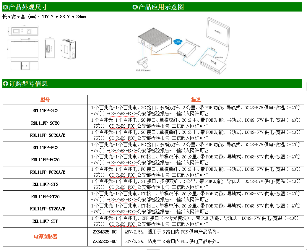 1路百兆POE電口+1路百兆SC光口工業級以太網POE交換機,支持1個10/100Base-TX電口和1個100Base-X光口。產品符合FCC、CE、ROHS標準。RD11FP系列交換機具有-40℃~80℃的工作溫度,具有超強的堅固度能適應各種嚴苛環境,也可以非常方便的安置在空間緊湊的控制箱中。導軌的安裝特性、寬溫操作及擁有IP40防護等級的外殼及LED指示燈,使RD11FP成為一個即插即用的工業級設備,為用戶的以太網設備聯網提供可靠、便捷的解決方案。