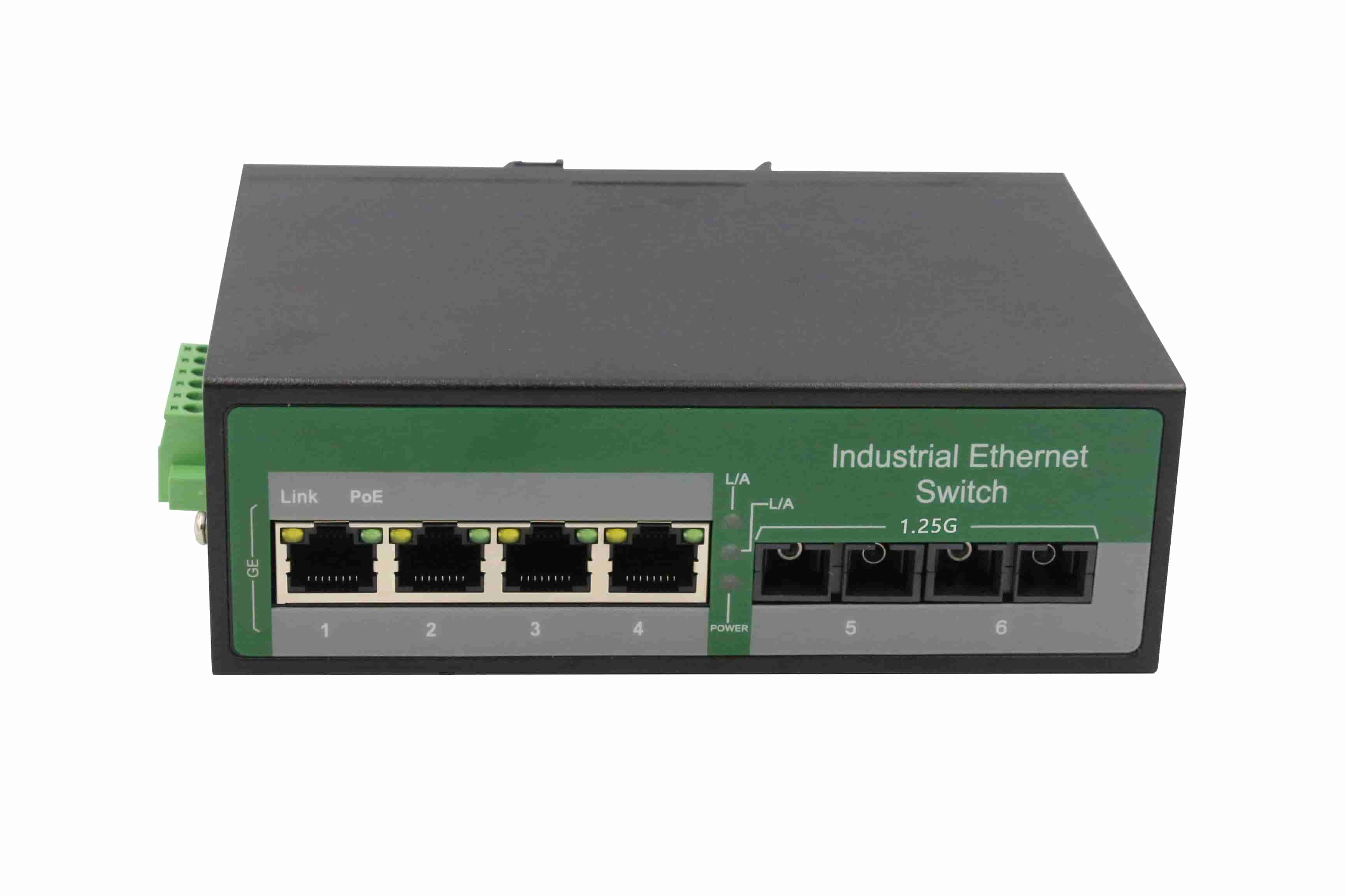4路千兆POE電口+2路千兆FX光口工業級以太網POE交換機,支持4個10/100/1000Base-TX電口和2個1000Base-X光口。產品符合FCC、CE、ROHS標準。RDL24GP-SFP交換機具有-40℃~75℃的工作溫度,具有超強的堅固度能適應各種嚴苛環境,也可以非常方便的安置在空間緊湊的控制箱中。導軌的安裝特性、寬溫操作及擁有IP40防護等級的外殼及LED指示燈,使RDL24GP-SFP成為一個即插即用的工業級設備,為用戶的以太網設備聯網提供可靠、便捷的解決方案。