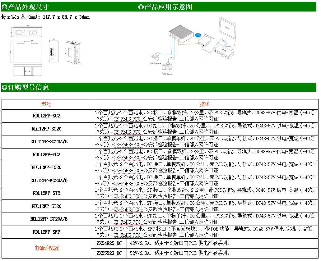 2路百兆POE電口+1路百兆SC光口工業級以太網POE交換機,支持2個10/100Base-TX電口和1個100Base-X光口。產品符合FCC、CE、ROHS標準。RDL12FP系列交換機具有-40℃~75℃的工作溫度,具有超強的堅固度能適應各種嚴苛環境,也可以非常方便的安置在空間緊湊的控制箱中。導軌的安裝特性、寬溫操作及擁有IP40防護等級的外殼及LED指示燈,使RDL12FP成為一個即插即用的工業級設備,為用戶的以太網設備聯網提供可靠、便捷的解決方案。