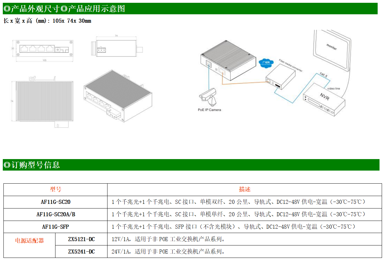 1路千兆電口+1路千兆FX光口工業級以太網交換機,支持1個10Base-T/100Base-T/1000Base-TX電口和1個1000Base-X光口。產品符合FCC、CE、ROHS標準。AF11G系列交換機具有-30℃~75℃的工作溫度,具有超強的堅固度能適應各種嚴苛環境,也可以非常方便的安置在空間緊湊的控制箱中。導軌的安裝特性、寬溫操作及擁有IP40防護等級的外殼及LED指示燈,使AF11G成為一個即插即用的工業級設備,為用戶的以太網設備聯網提供可靠、便捷的解決方案。