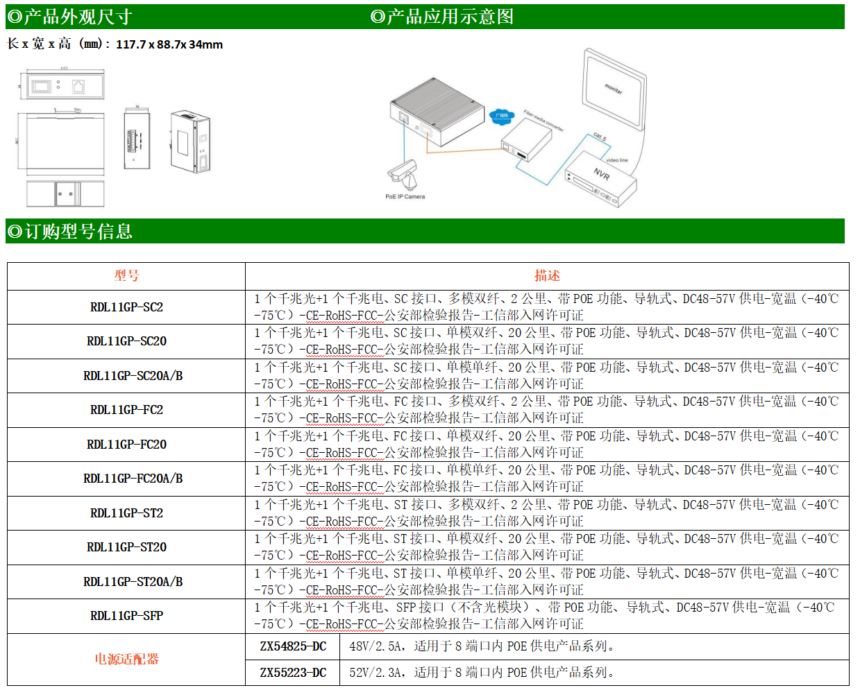 ●使用SC/FC/ST/SFP光纖接口