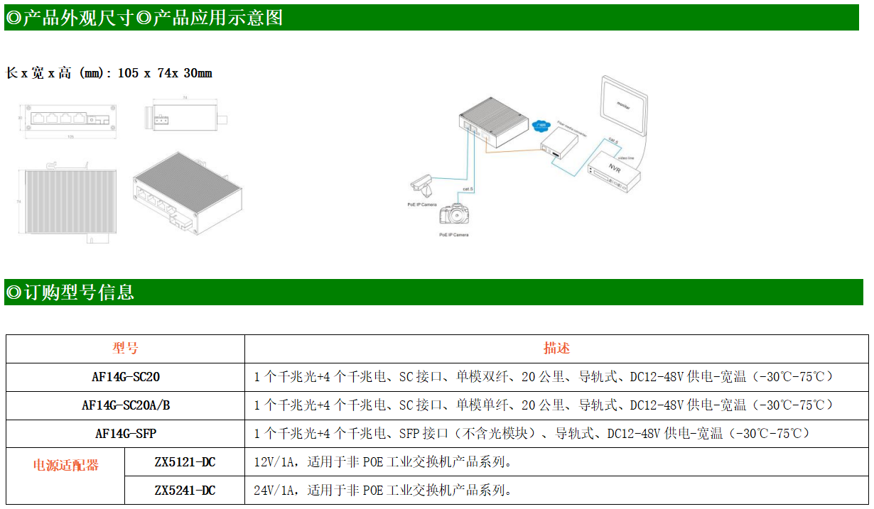 4路千兆電口+1路千兆FX光口工業(yè)級以太網交換機,支持4個100Base-T/1000Base-TX電口和1個1000Base-X光口。產品符合FCC、CE、ROHS標準。AF14G系列交換機具有-30℃~75℃的工作溫度,具有超強的堅固度能適應各種嚴苛環(huán)境,也可以非常方便的安置在空間緊湊的控制箱中。導軌的安裝特性、寬溫操作及擁有IP40防護等級的外殼及LED指示燈,使AF14G成為一個即插即用的工業(yè)級設備,為用戶的以太網設備聯網提供可靠、便捷的解決方案。