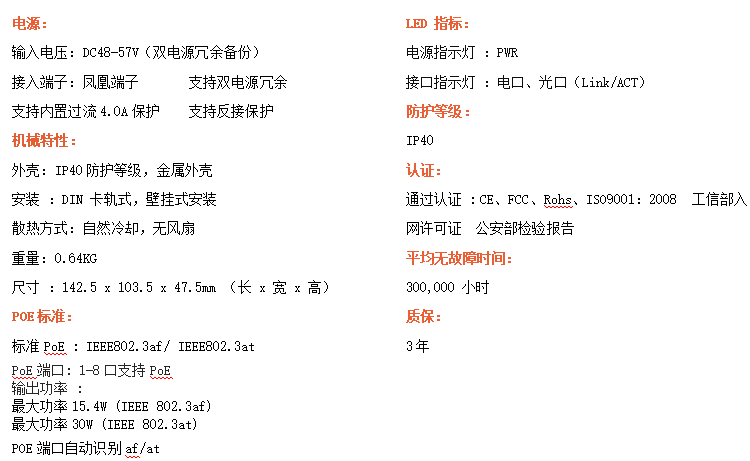 ●工作電源:DC 48-57V 提供反接保護