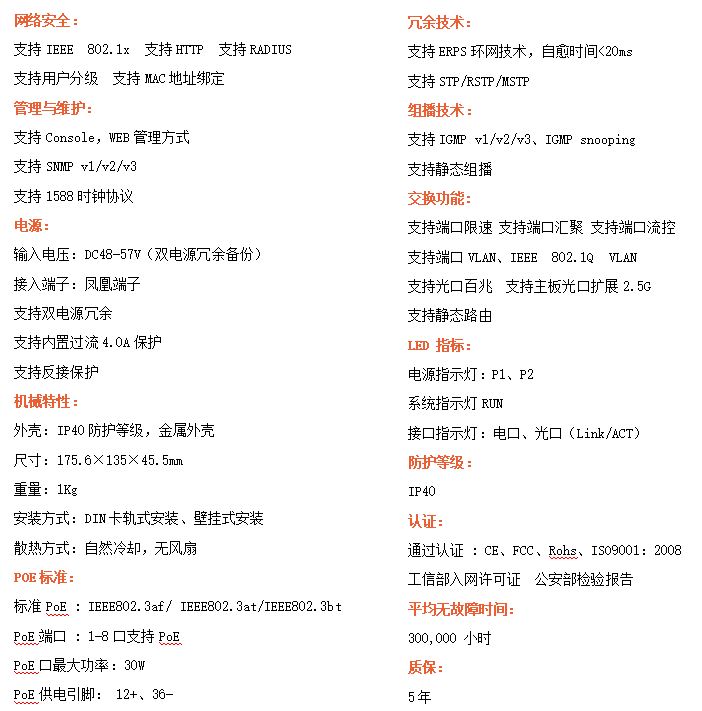 ●安全管理:支持ACL訪問控制列表,支持802.1X,支持用戶分級管理
