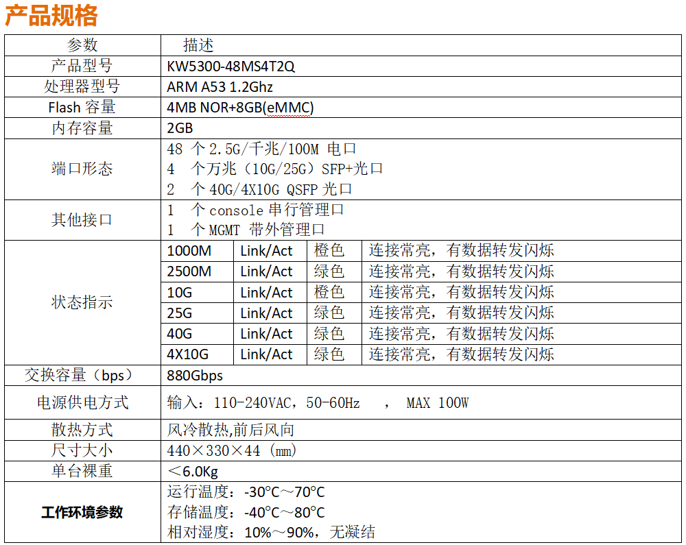 KW5300-48MS4T2Q系列交換機是新一代的2.5G 高速端口的萬兆管理型交換機。該系列交換機提供多方面的管理功能,可對系統(tǒng)、端口、網(wǎng)絡、VLAN、Trunk、優(yōu)先級、安全等進行管理。包括支持不同病毒防御和二層到四層的安全過濾。具備基本的三層網(wǎng)絡管理功能。其智能的配置管理、高性能的通信芯片、高品質的電源,為中小企業(yè)、網(wǎng)吧提供快速穩(wěn)定的網(wǎng)絡解決方案。