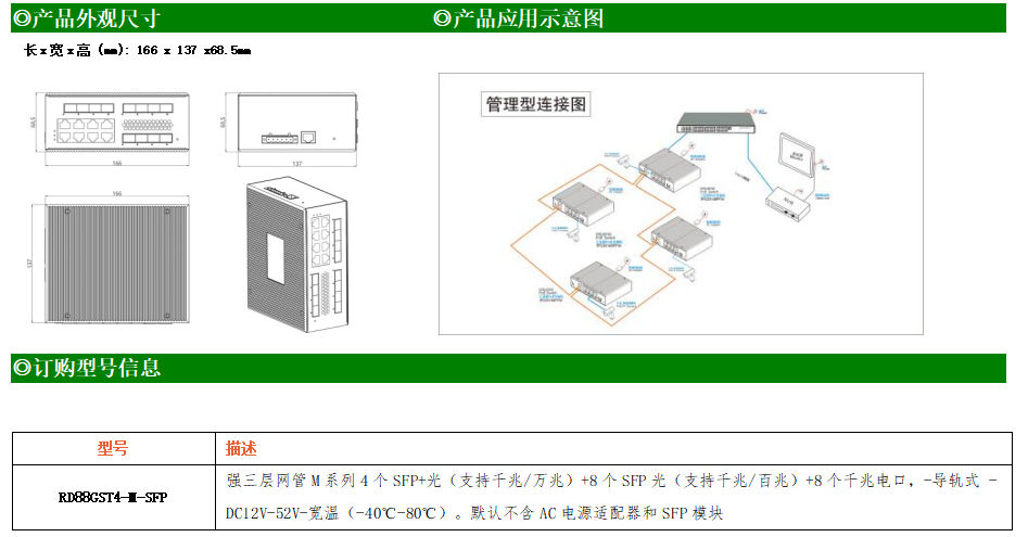 RD88GST4-M-SFP交換機(jī)是我司推出的一款萬(wàn)兆三層交換機(jī),配備4個(gè)萬(wàn)兆SFP+光口、8個(gè)千兆SFP光口和8個(gè)10/100/1000M Base-T自適應(yīng)電口,具備先進(jìn)的硬件處理能力和最豐富的業(yè)務(wù)特性。支持IPv4/IPv6 硬件雙棧及線速轉(zhuǎn)發(fā),使客戶能夠從容應(yīng)對(duì)即將帶來(lái)的IPv6 時(shí)代其提供高容量的交換能力。RD88GST4-M-SFP交換機(jī)具有-40℃~80℃的工作溫度,具有超強(qiáng)的堅(jiān)固度能適應(yīng)各種嚴(yán)苛環(huán)境。導(dǎo)軌式安裝特性、寬溫操作,使RD48GST4-M-SFP的交換機(jī)成為一個(gè)即插即用的工業(yè)級(jí)設(shè)備,為用戶的以太網(wǎng)設(shè)備聯(lián)網(wǎng)提供可靠、便捷的解決方案。