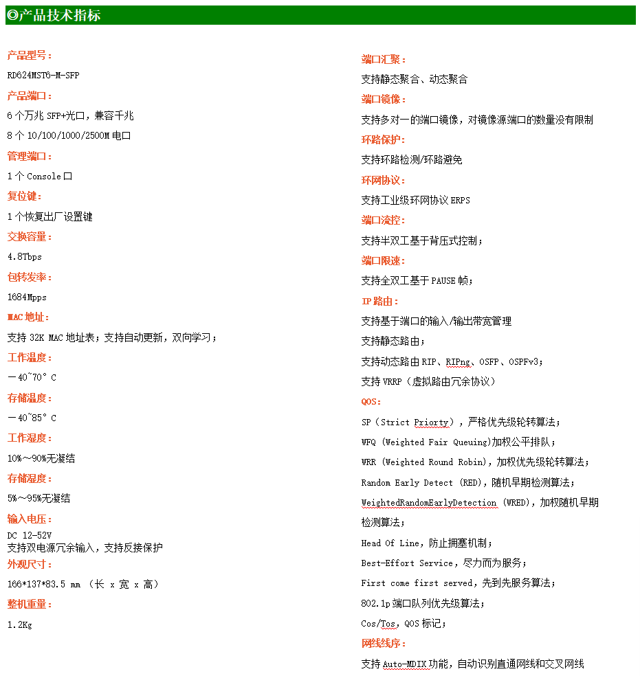 ●網(wǎng)絡(luò)冗余:支持STP/RSTP/MSTP,支持ERPS(自愈時(shí)間<20ms)