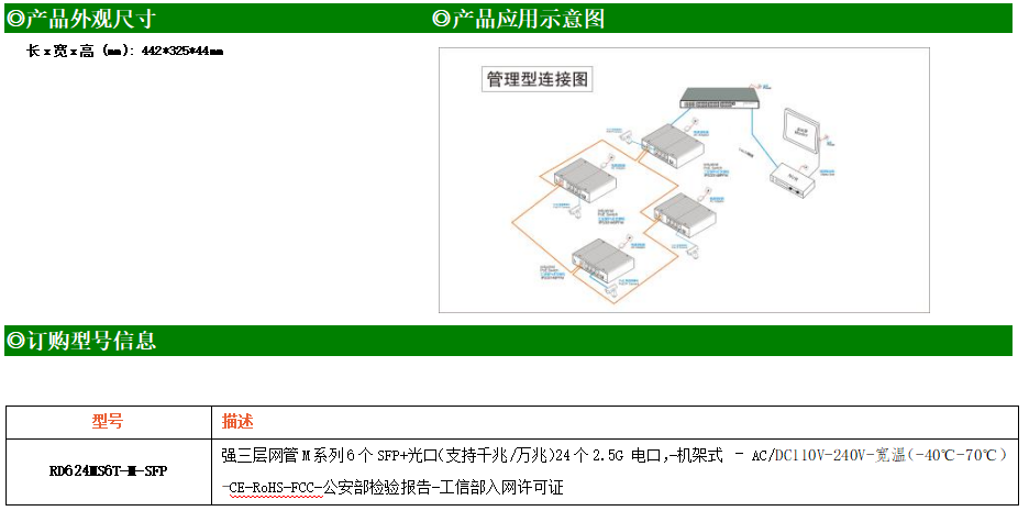 RD624MS6T-M-SFP交換機(jī)是我司推出的一款萬兆三層工業(yè)以太網(wǎng)交換機(jī),產(chǎn)品符合FCC、CE、RoHS標(biāo)準(zhǔn)。具備先進(jìn)的硬件處理能力和最豐富的業(yè)務(wù)特性。支持IPv4/IPv6 硬件雙棧及線速轉(zhuǎn)發(fā),使客戶能夠從容應(yīng)對即將帶來的IPv6 時代其提供高容量的交換能力。RD624MS6T-M-SFP交換機(jī)具有-40℃~70℃的工作溫度,具有超強(qiáng)的堅固度能適應(yīng)各種嚴(yán)苛環(huán)境。導(dǎo)軌式安裝特性、寬溫操作,使RD624MS6T-M-SFP的交換機(jī)成為一個即插即用的工業(yè)級設(shè)備,為用戶的以太網(wǎng)設(shè)備聯(lián)網(wǎng)提供可靠、便捷的解決方案。