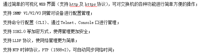 ●管理功能:支持WEB、CLI、SNMP等多種管理方式