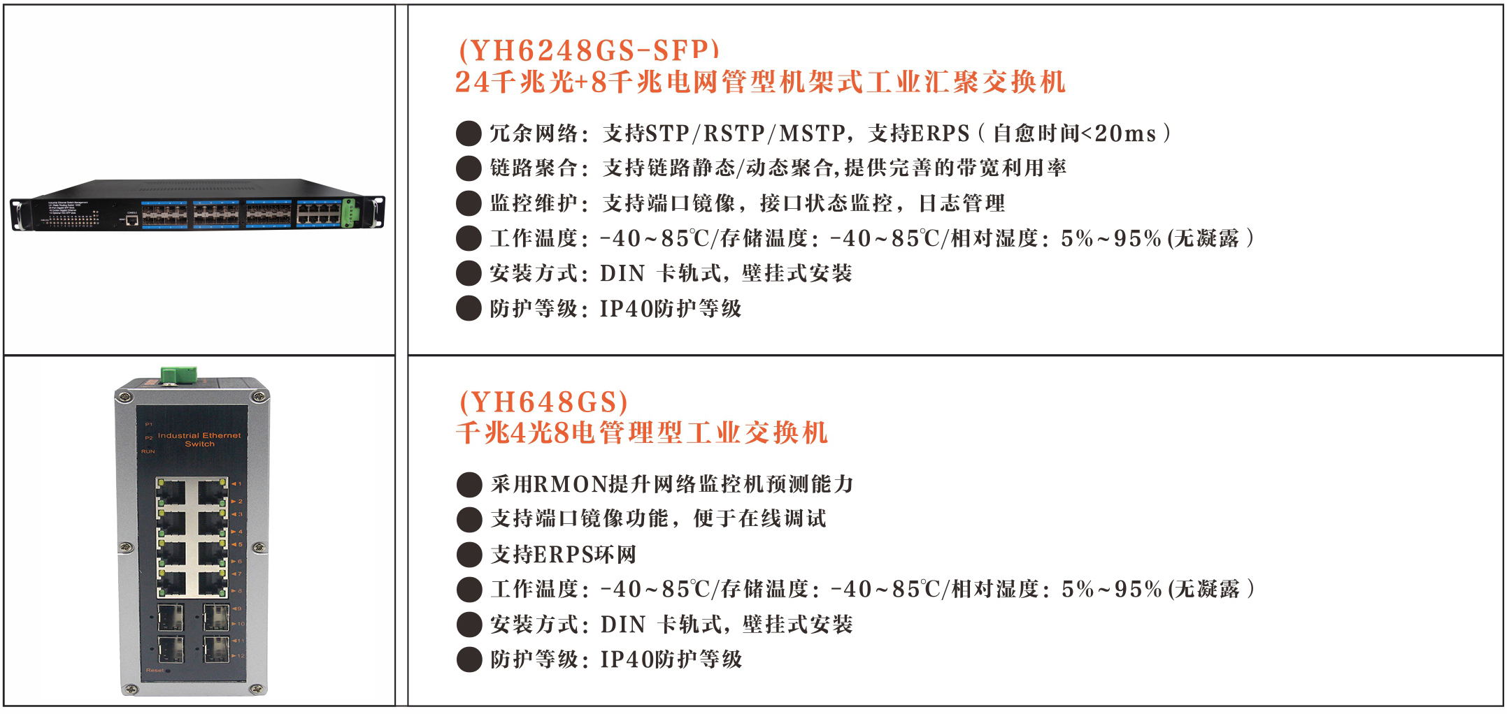 宇航在光伏發電站監控系統解決方案中采用了YH6248GS-SFP,YH648GS-SFP經數據采集,網絡傳輸,中心監控,以及使用端口匯聚實現上傳至站控制層的鏈接冗余。核心機房由宇航工業以太網交換機YH6248GS-SFP組成,YH6248GS-SFP匯聚多個環網數據流量。由YH648GS-SFP工業以太網交換機組成多個千兆冗余環網組成冗余協議,每個環網通過物理相隔離,提高網絡的安全性,保障了網絡的無憂切換。